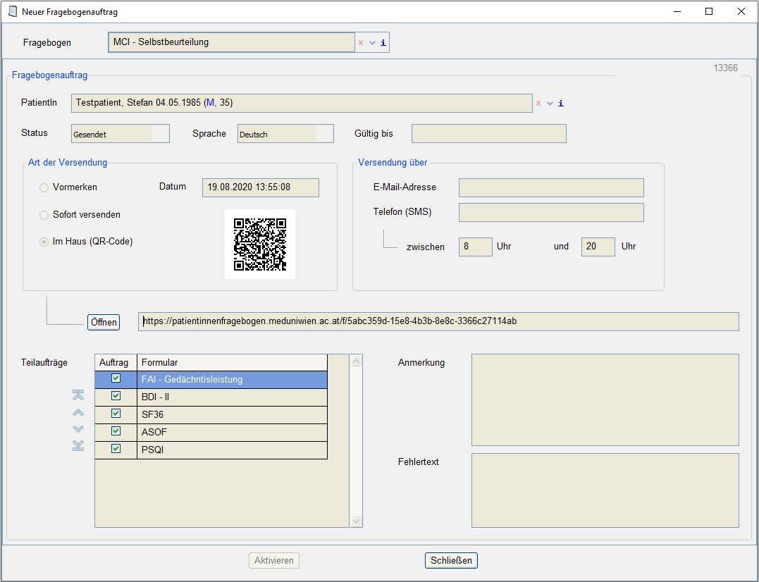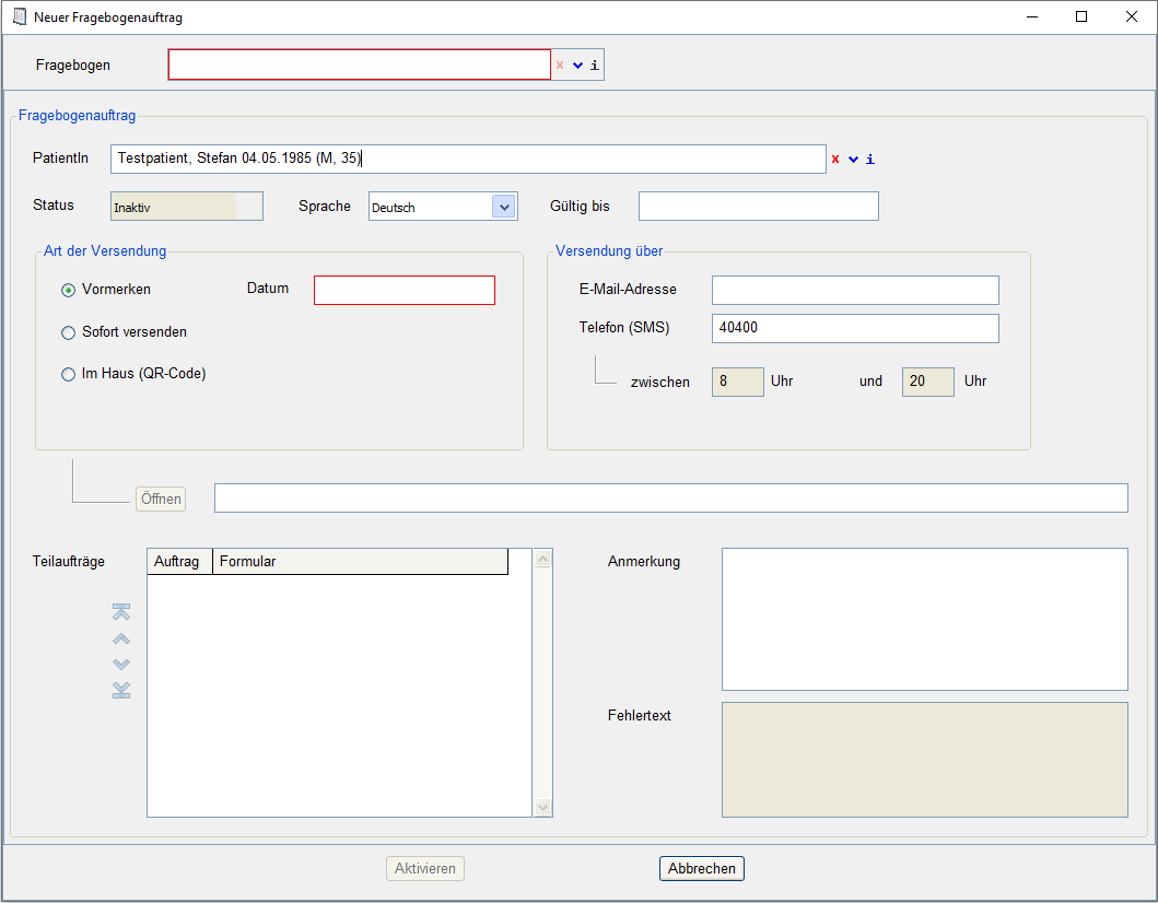 Fragebogenauftrag anlegen